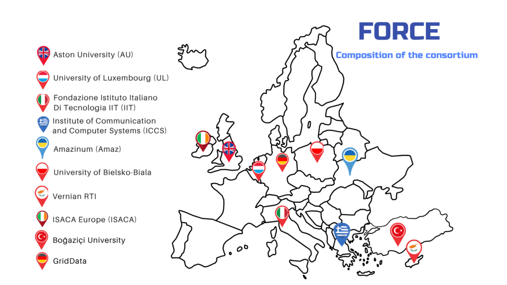 The FORCE consortium unites partners from 10 countries (the United Kingdom, Greece, Italy, Turkey, Luxembourg, Ireland, Poland, Ukraine, Cyprus, and Germany) – creating a truly international and interdisciplinary collaboration. By combining expertise across AI, blockchain analytics, cryptography, financial regulation, and compliance, the project aims to deliver AML frameworks and tools that are robust, adaptable, and future-ready.