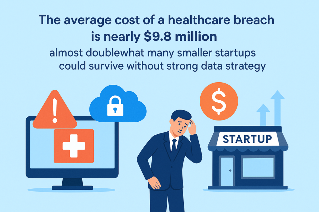 The average cost of a healthcare breach is nearly $9.8 million, almost double what many smaller startups could survive without strong data strategy